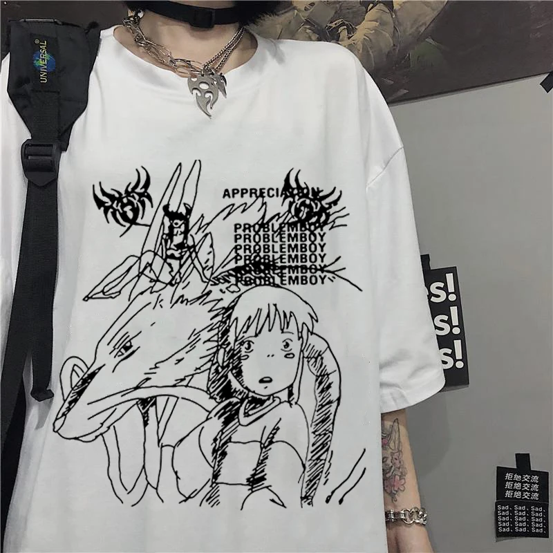 Футболка женская оверсайз в стиле Хаяо, топ с принтом в готическом ...