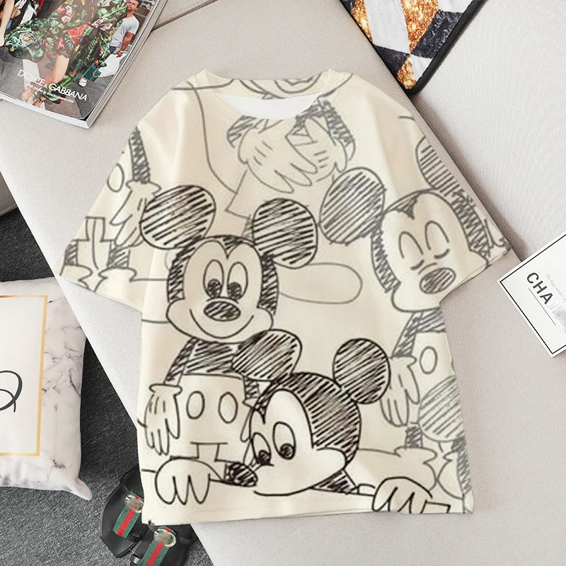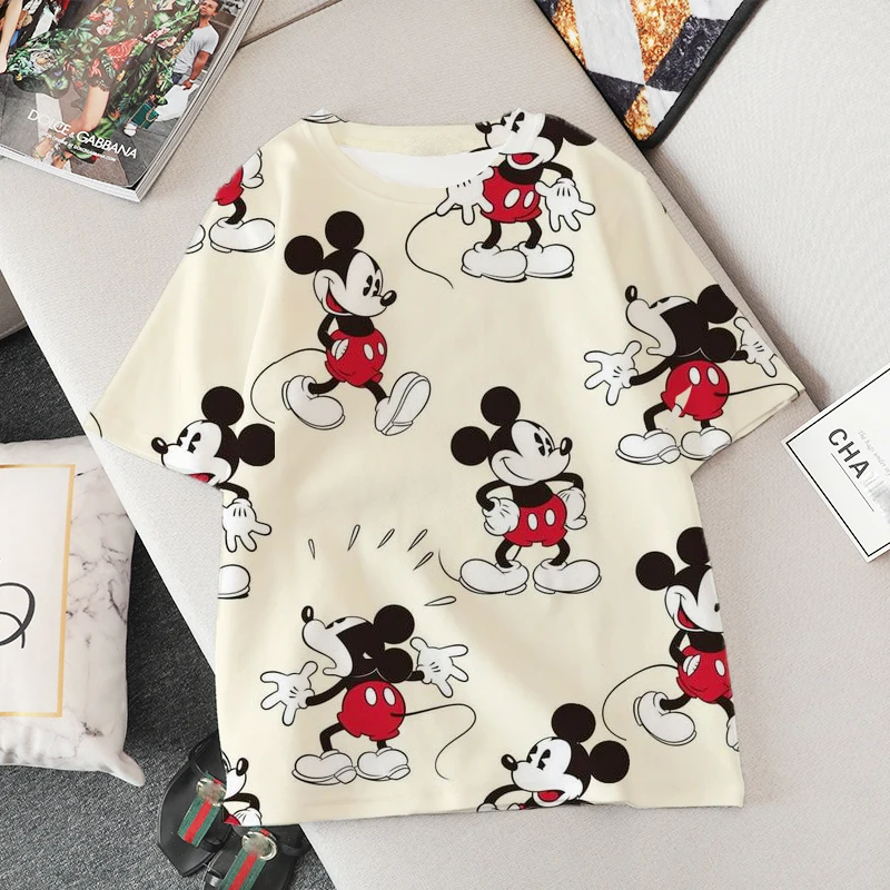 Женская футболка с коротким рукавом, летняя футболка большого размера в стиле ольччан с 3d-изображением Диснея, Микки, Минни, Харадзюку, y2k