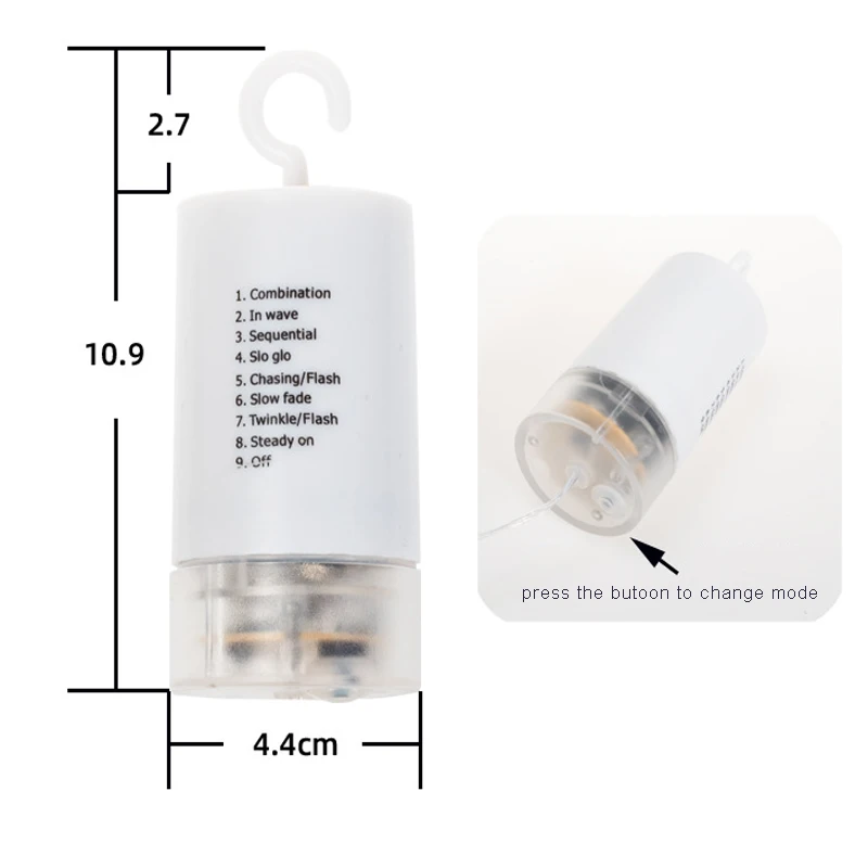 8 функций: комбинация, волна, последовательно, Slo glo, чеканка/вспышка, медленное выцветание, мерцание/вспышка, постоянное включение