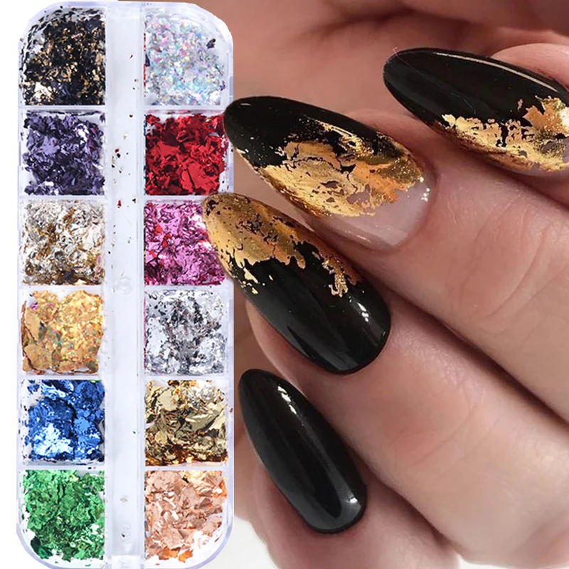 Блестящие золотые из фольги для ногтей пайетки нерегулярные Алюминий хлопья блестка Чип металлический лак для ногтей Пудра с эффектом блеска DIY украшения для ногтей