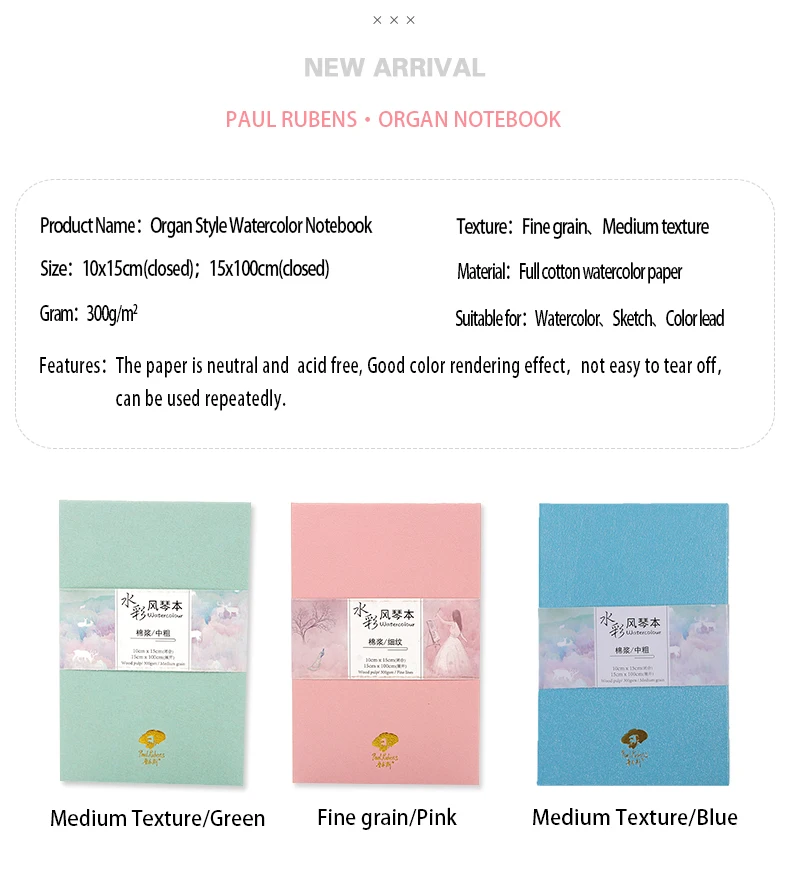 Хлопковая Акварельная бумага Paul Ruben 300 г, записная книжка для акварели, портативный дорожный блокнот для рисования акварелью