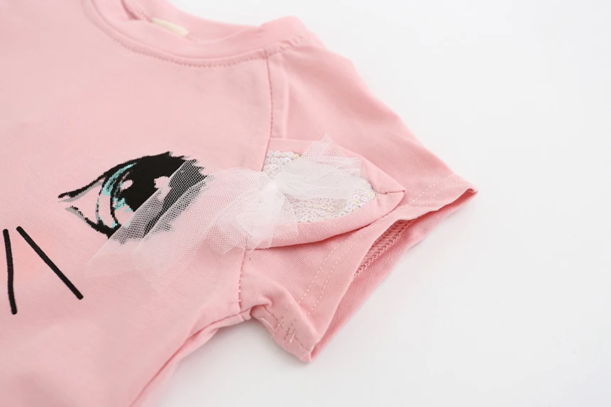 Комплект одежды для девочек, футболка с лебедем + сетка со звездами...