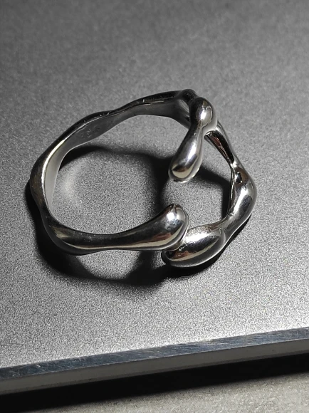 Кольцо отливного качества, металл плотный, но при этом поддающийся под регулировку. Выглядит на руке очень классно и необычно.