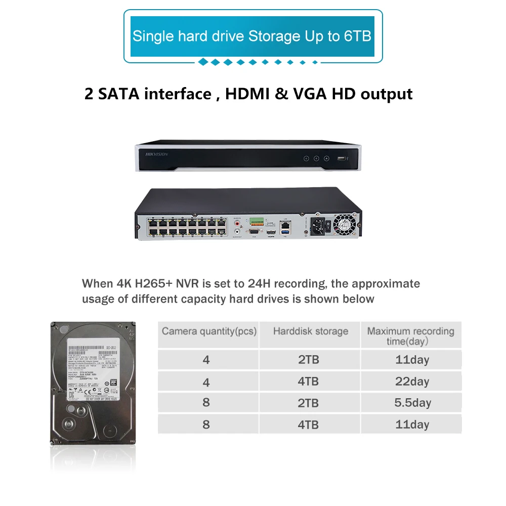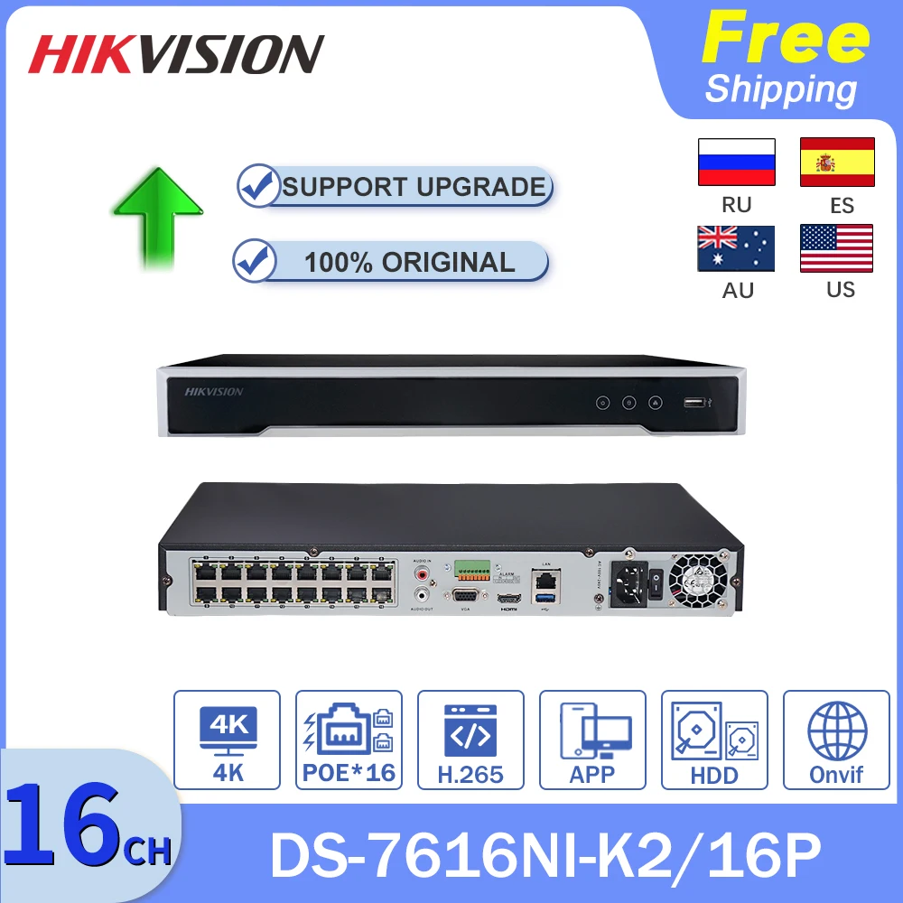 Hikvision NVR POE оригинальный 16CH 8CH 4CH 8MP NVR DS-7616NI-K216P видеорегистратор 4K система видеонаблюдения двухстороннее аудио H.265