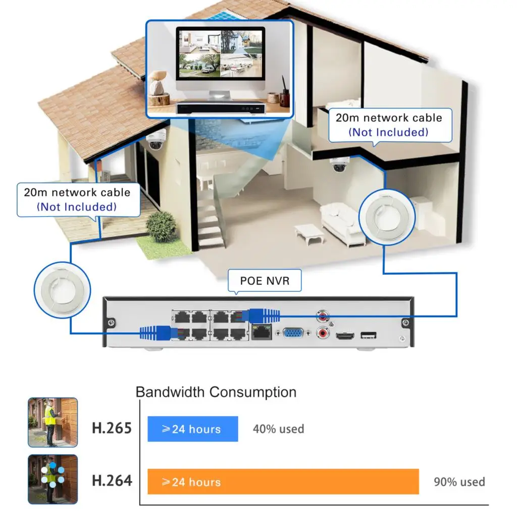 > 16-канальные сетевые камеры могут быть подключены с входящей пропускной способностью 160 м