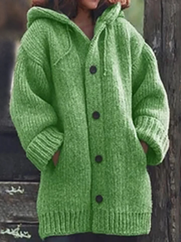 S-5XL; Сезон осень-зима; Модные Однотонная одежда Свободные Теплые Свитер с длинными рукавами куртки больших Размеры вязаный средней длины с капюшоном большого размера для женщин
