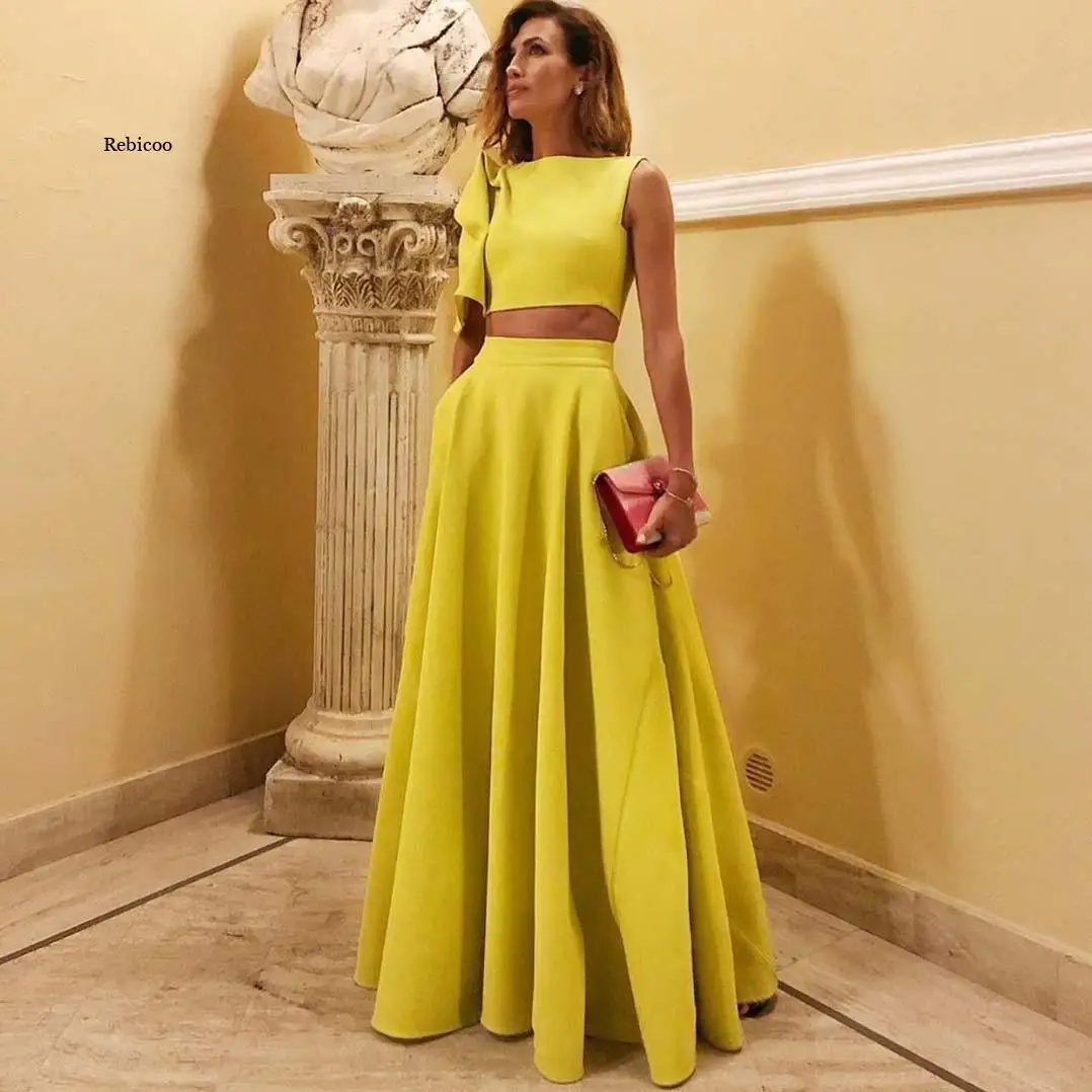 Женские костюмы, летний короткий топ без рукавов и юбка, элегантный желтый Женский комплект из 2 предметов, Однотонная юбка и топ