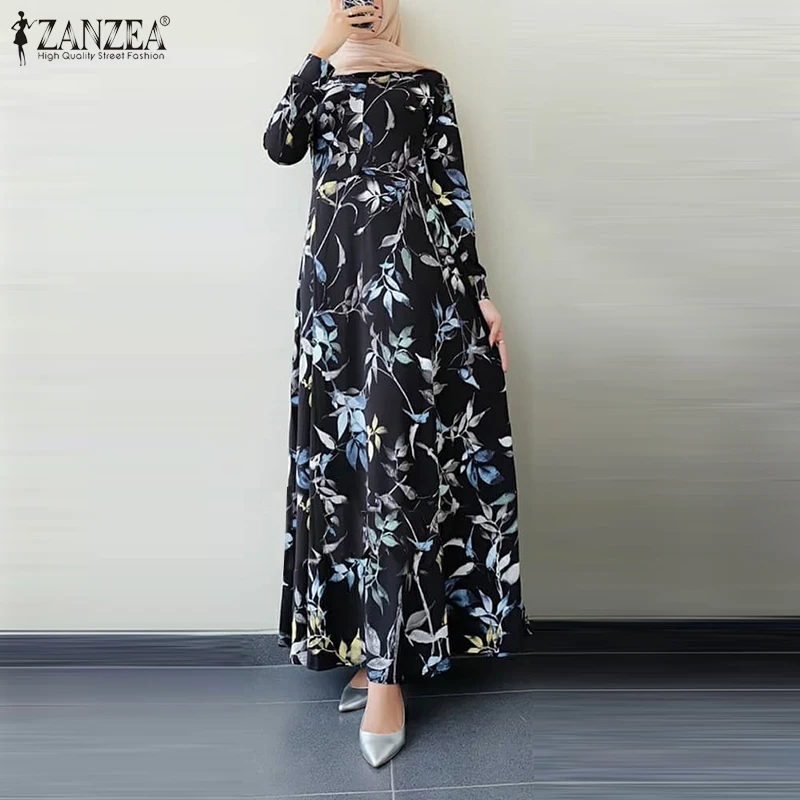 Женское платье-хиджаб ZANZEA, винтажное длинное платье-хиджаб с длинным рукавом и цветочным принтом