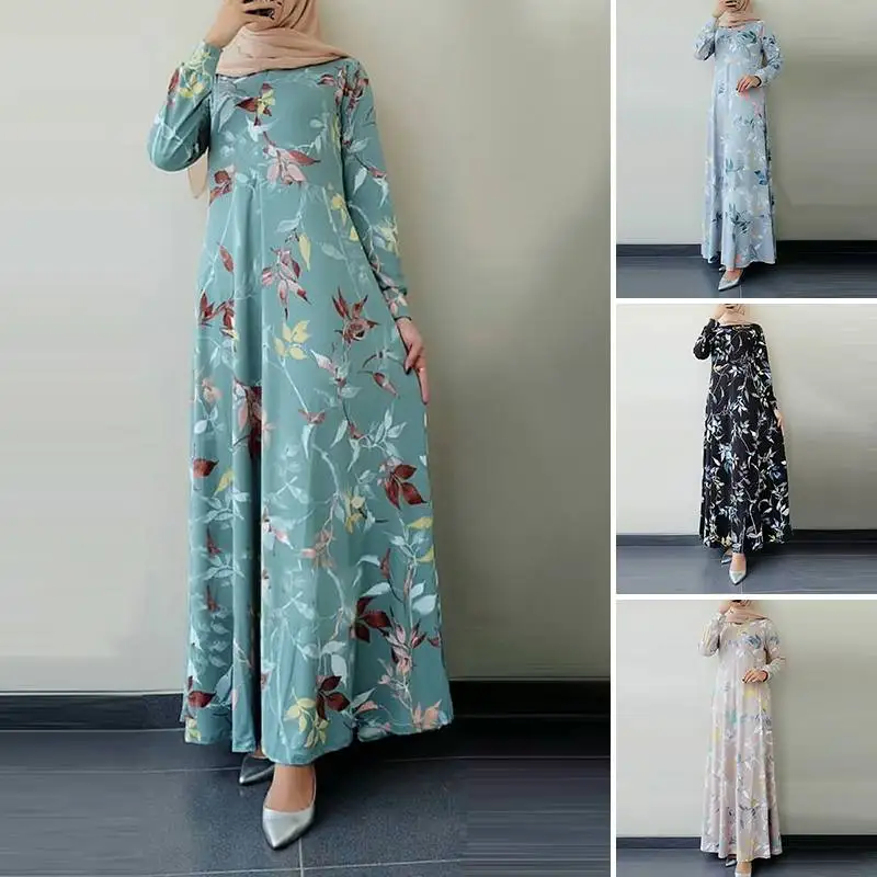 Женское мусульманское платье с длинным рукавом, с цветочным принтом
