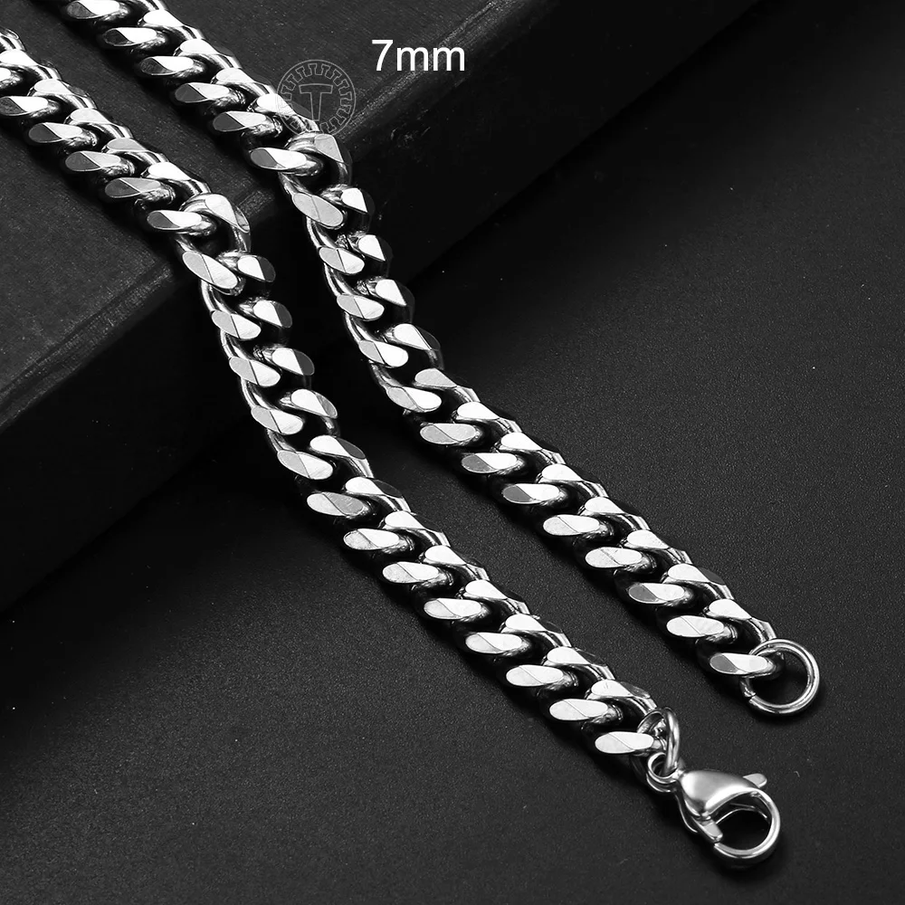 Простые 3-7 мм из нержавеющей стали кубинские звенья цепи ожерелья для мужчин ювелирные изделия золотой черный серебряный цвет Майами Снаряженная Цепь KN197KB217