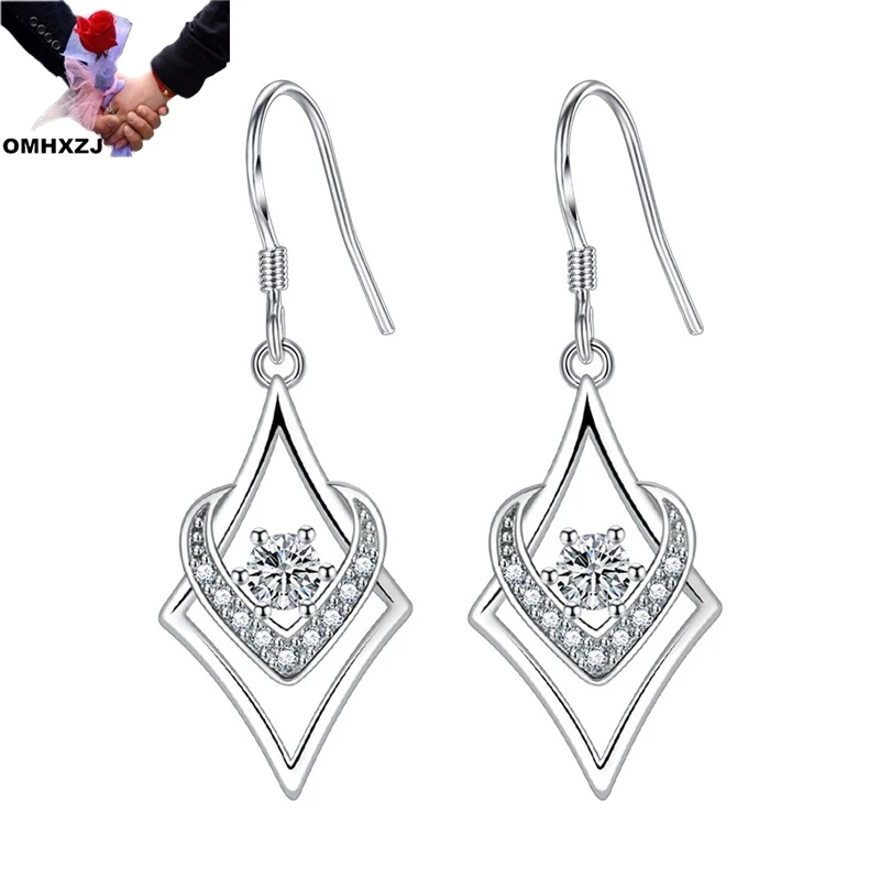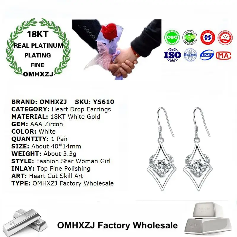 OMHXZJ, оптовая продажа, YS610, Европейская мода, женские, для вечеринки, дня рождения, свадьбы, подарок, сердца, циркон AAA, 18KT, серьги-подвески из белого золота