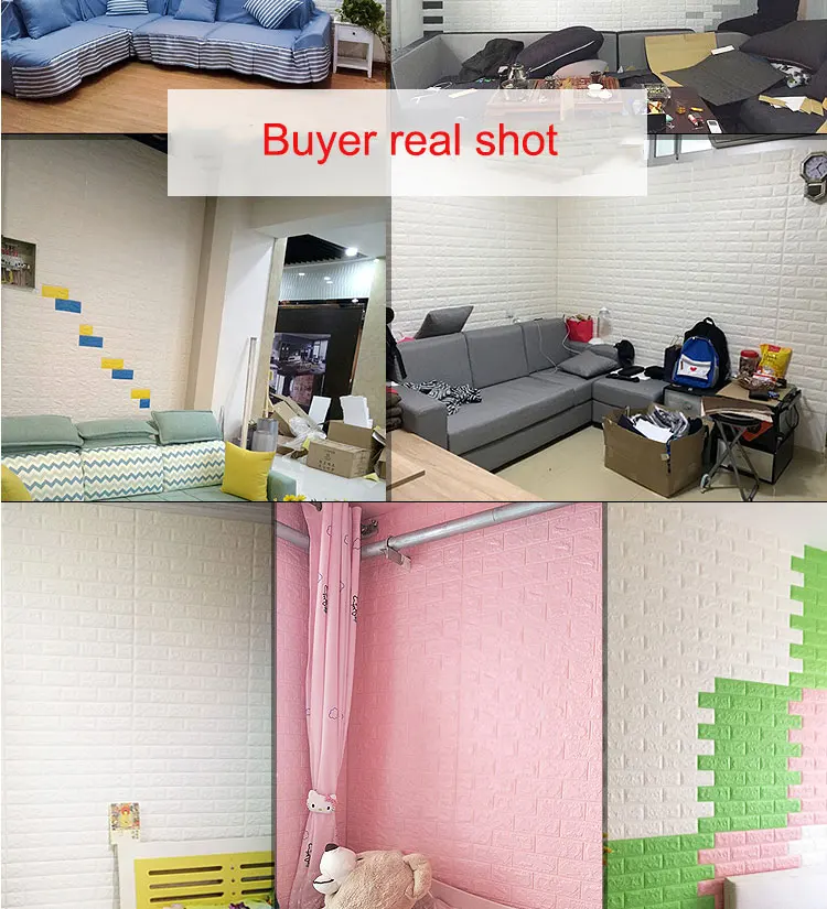 Характеристика:1: трехмерная декоративная мягкая пена, защита от столкновений для детей, забота о вашей семье.2: Безопасность и защита окружающей среды, нетоксичный запах, подходит для семейного безопасного домашнего пространства.3: Реалистичный, естественный эффект кирпичного узора, простой и современный стиль.4: Бесплатный DIY, простой самоклеящийся дизайн, установка, повседневный коллаж, произвольный крой.5: сравнение обоев с улучшенным эффектом шумоподавления.Способы установки и инструментыПодготовка: Очистите поверхность с адгезией, например: поверхность из дерева, поверхность из стекла, не Пылезащитная стена, нажмите на дно шпатлевки и так далее.Паста: на заднюю крышку разорвана бумага, приклеенная К вспомогательным инструментам: ножницы, ножВнимание: пожалуйста, купите достаточное количество единиц товара, чтобы убедиться, что они поставляются из одной партии, чтобы избежать разницы в цвете.