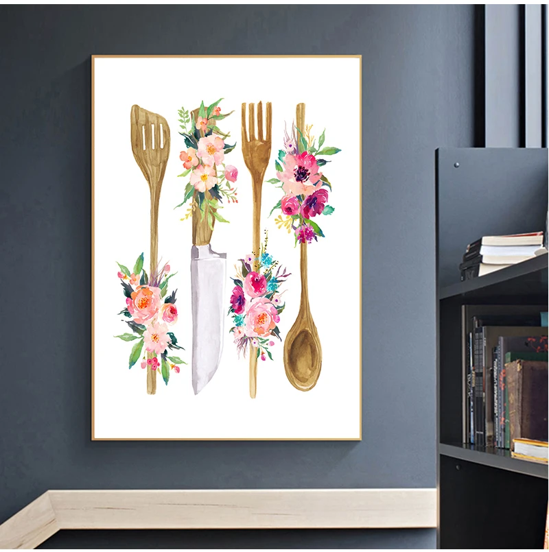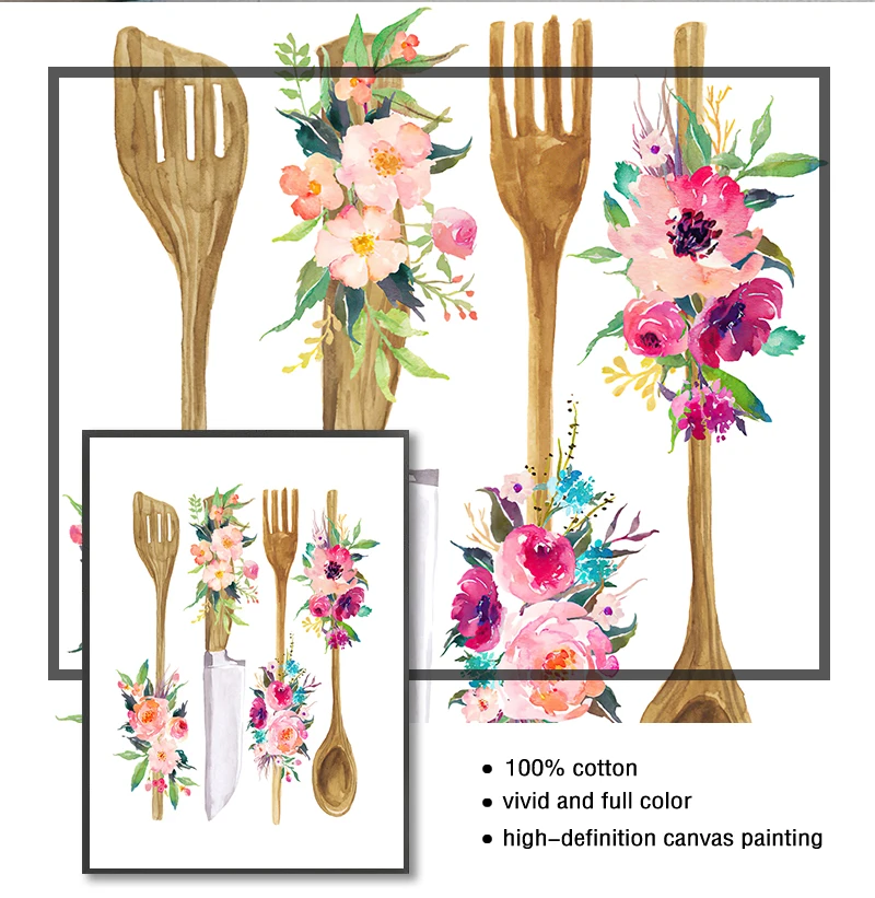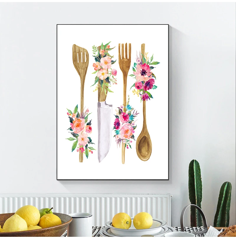 Картина на стену, плакат, украшение для дома, Цветочная кухонная утварь, печать на кухне, настенное искусство, Декор, деревянная утварь, холст