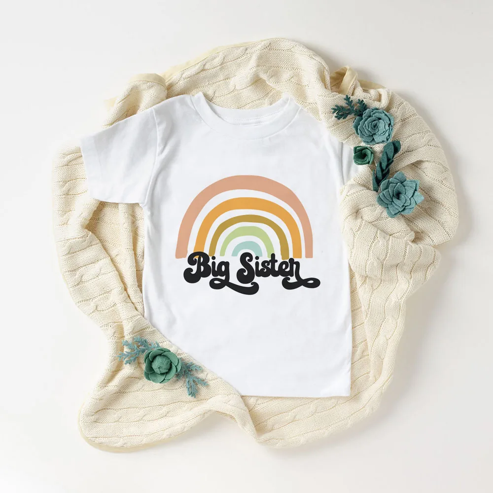 Повседневная одежда для девочек с надписью Rainbow Sister, футболка унисекс для девочек, милая детская футболка, рубашки для мальчиков