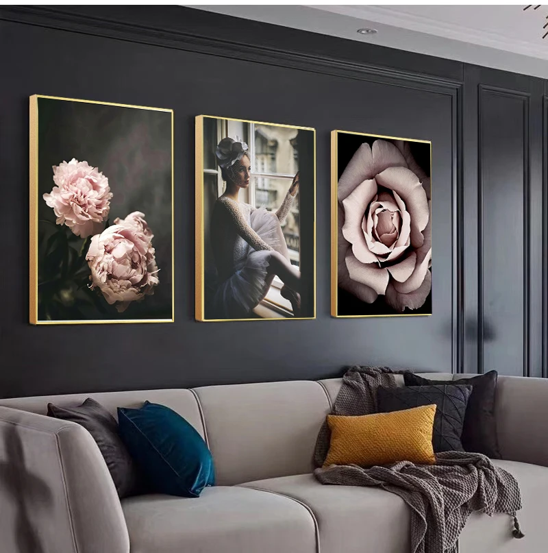 Печать интерьера гостиной домашний Декор без рамки Розовый пион Цветочная девушка следы холст живопись настенные картины плакат