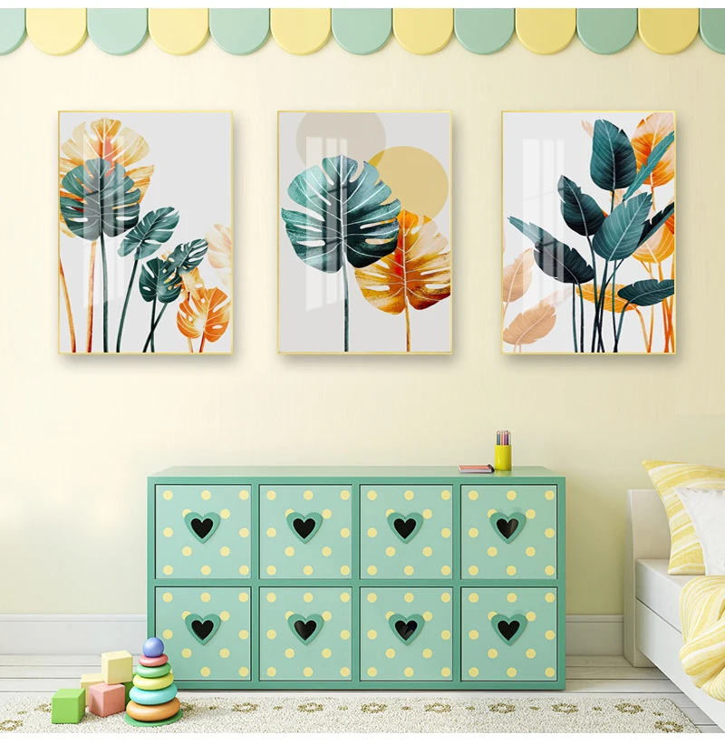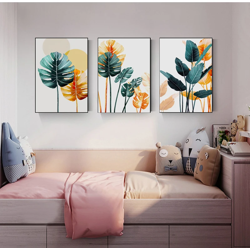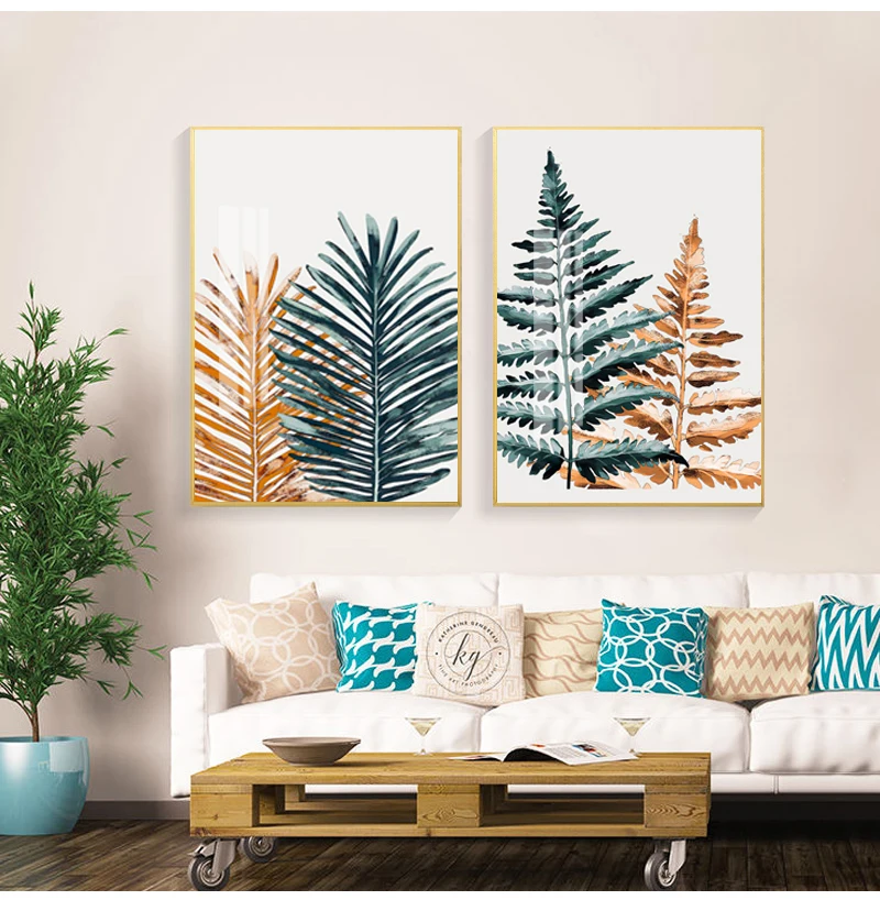 Для гостиной, домашний декор, рандомный цвет, скандинавские цветные растения, листья, плакат, печать, пейзаж, настенное искусство, холст, живопись, картина