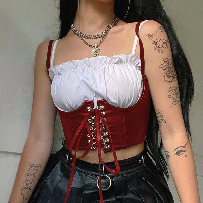 Новинка 2021 Готический корсет из искусственной кожи на бретельках ...