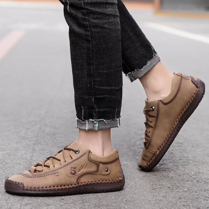 Кроссовки мужские кожаные, легкие лоферы, дышащие, ручная работа, м...