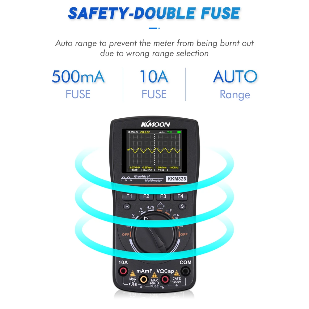 Цифровой осциллограф высокой четкости kkm828, мультиметр 2 в 1 и 2. 4-дюймовый цветной экран, полоса пропускания 1 МГц, частота дискретизации 2,5 Мбитс