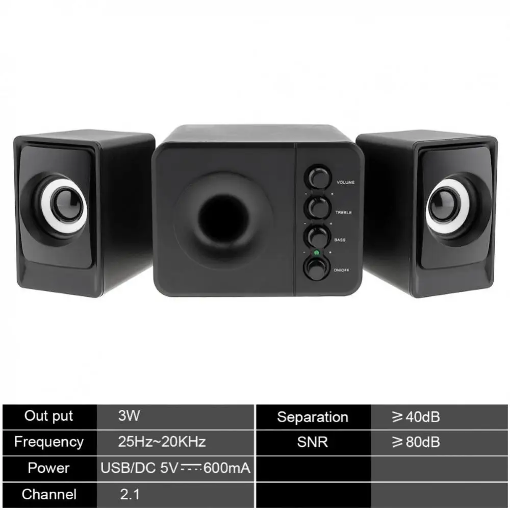Характеристики:Питание от USB напрямую, простое подключение.Полночастотный Вибрационный громкоговоритель большого диаметра, глубокий бас, богатый средний и четкий тройник.Задний бас-труба, бас толстый, чтобы принести вам высокое качество басов.Выключатель питания, прост в использовании.Отлично работает, края отполированы, гладкая обработка.Высокая магнитная колонка, дает вам различный опыт прослушивания.Можно подключить ПК, ноутбук, мобильный телефон, MP3, MP4, DVD.Название товара: колонкиМатериал: пластикВыходная мощность: 3 ВтТип соединения: 3,5 мм аудио разъемИсточник питания: USB/DC 5 ВСтепень разделения: >= 40 дБОтношение сигнал-шум: >= 80 дБЧастота: 25 Гц ~ 20 кГцКанал: 2,1Характеристики: портативный, компактный размер, сабвуферОсновной динамик: 127 мм x 117 мм x 96 мм/5,00 "x 4,61" x 3,78 "(прибл.)Поддинамик: 96 мм x 77 мм x 61 мм/3,78 "x 3,03" x 2,40 "(прибл.)Примечания:Благодаря светильник и экрана Цвет Товара может быть s светильник ly отличается из-за характеристик монитора компьютера.Возможны незначительные отклонения в размерах из-за различных измерений вручную.Посылка включает в себя:1 х основной динамик2 подколонки