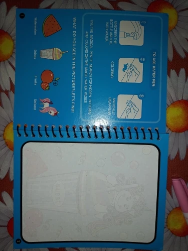 Листья книги жирные, вы можете вращаться, не ожидая, что она высохнет до конца. Легко рисовать водой, очень быстро сохнет и, таким образом, вы можете повторить несколько раз. Книга прибыла синим цветом, а не красным, как в описании, но мне все равно. Крышка ручки прибыла сломанной, но ручка в порядке.