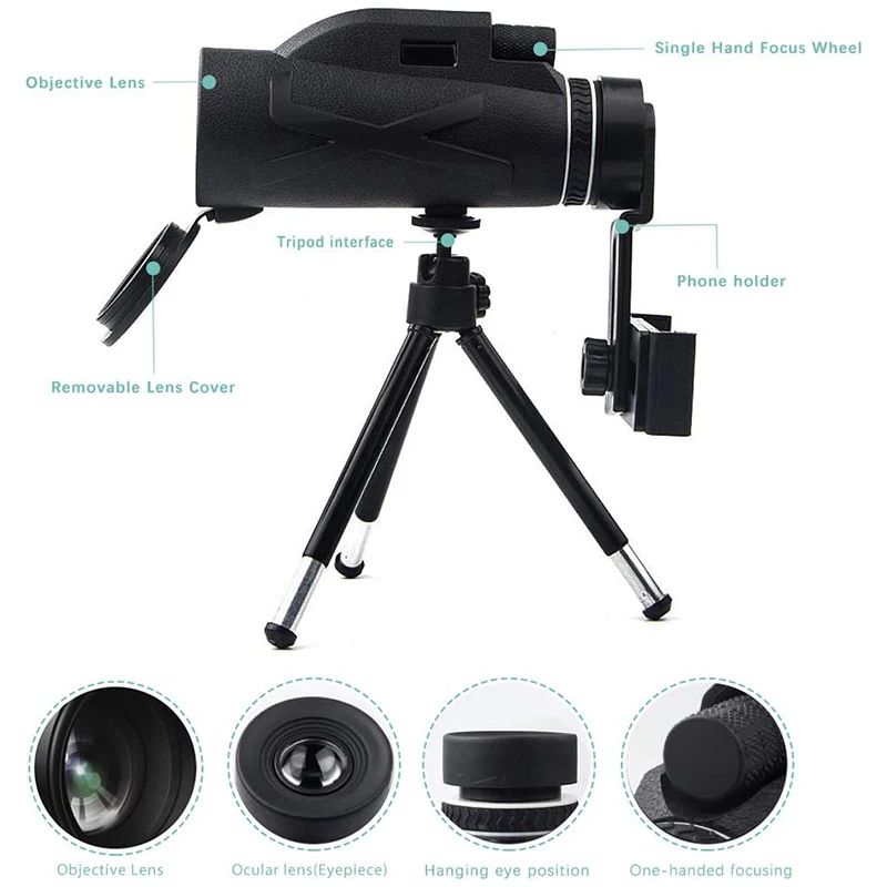 80x100 HD монокуляр Starscope телескоп для наблюдения за птицами телефон клип Штатив для наружного кемпинг экскурсии Охота Пеший Туризм