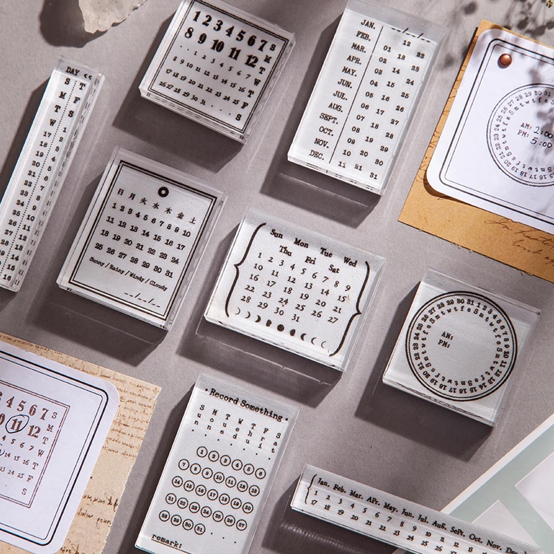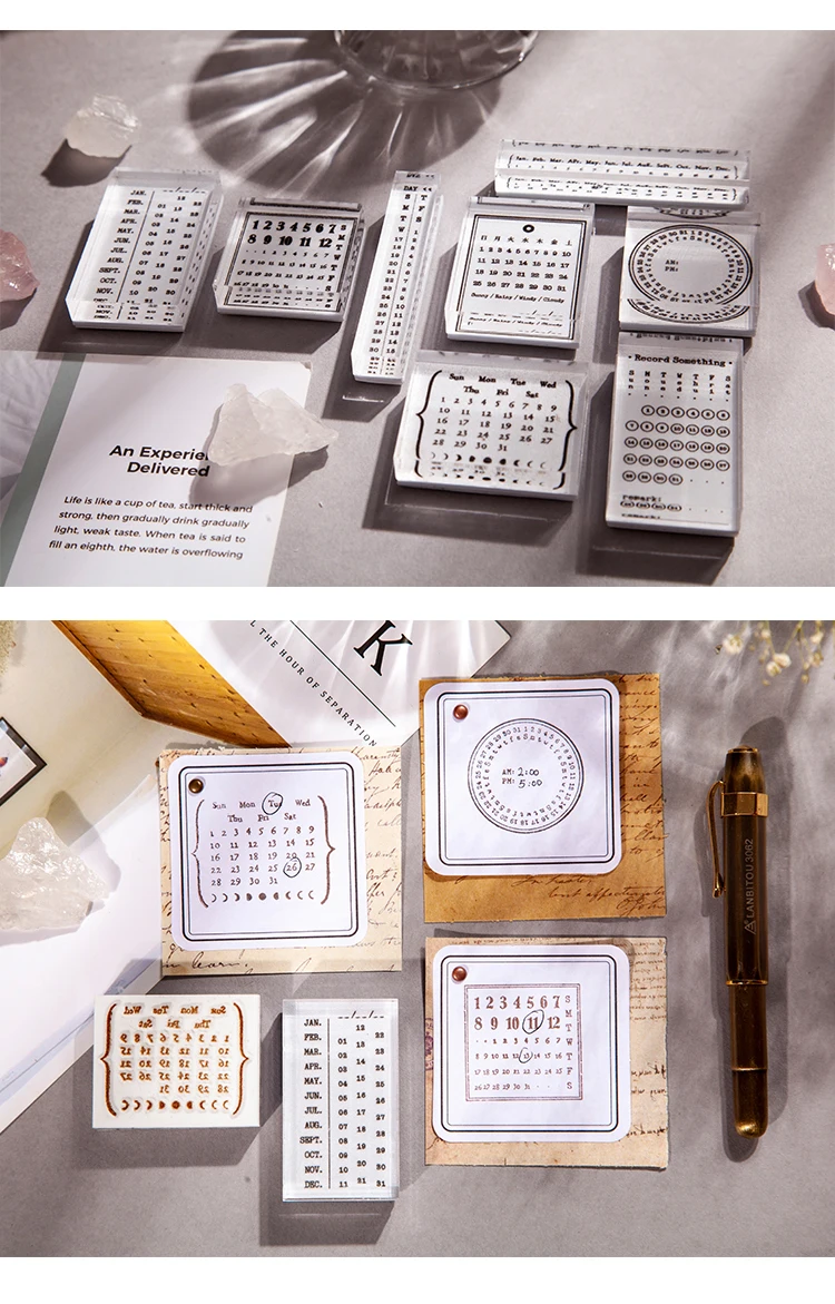 Деревянные каучуковые штампы в стиле ретро, неделямесяц, календарь, дневник, скрапбукинг, планировщик, штамп для записей, записей