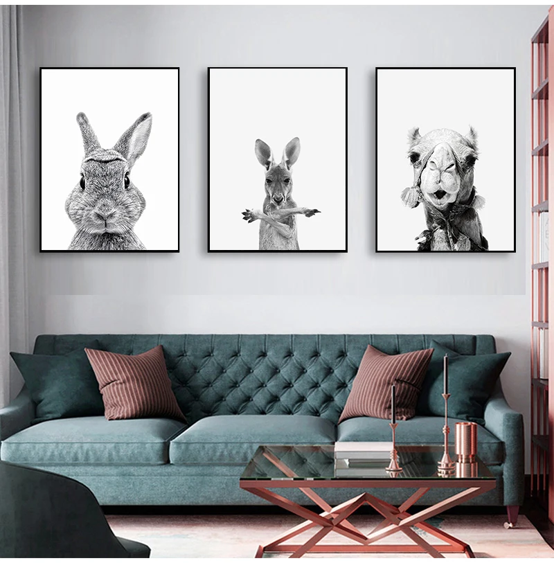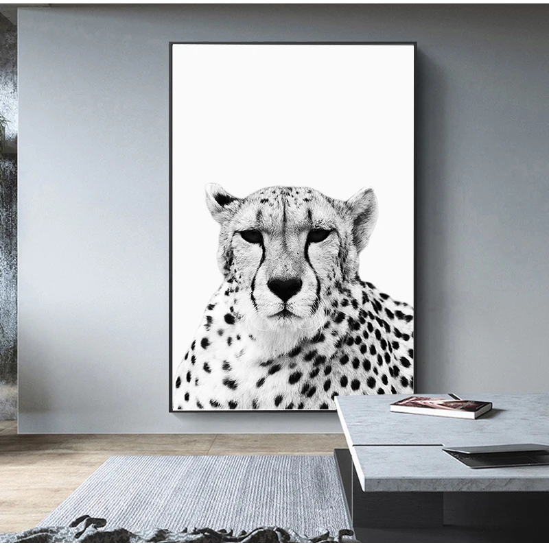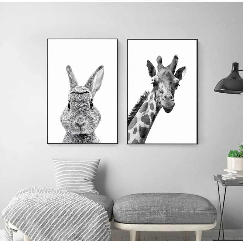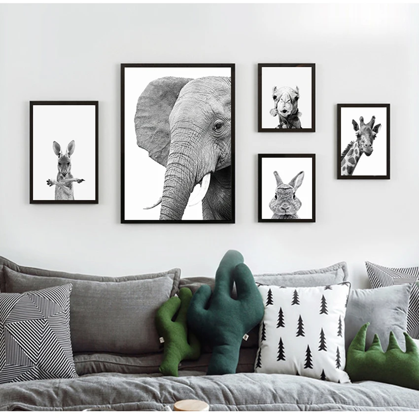 Черно-белые картины для украшения детской комнаты, настенный плакат с животными, принтом льва, зебры, слона, Картина на холсте в стиле сафари для детской комнаты