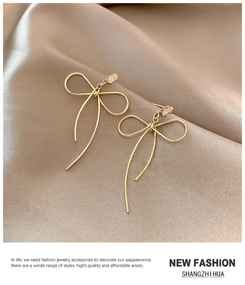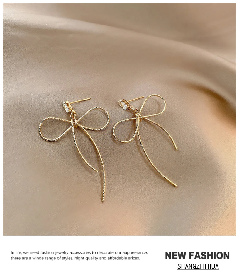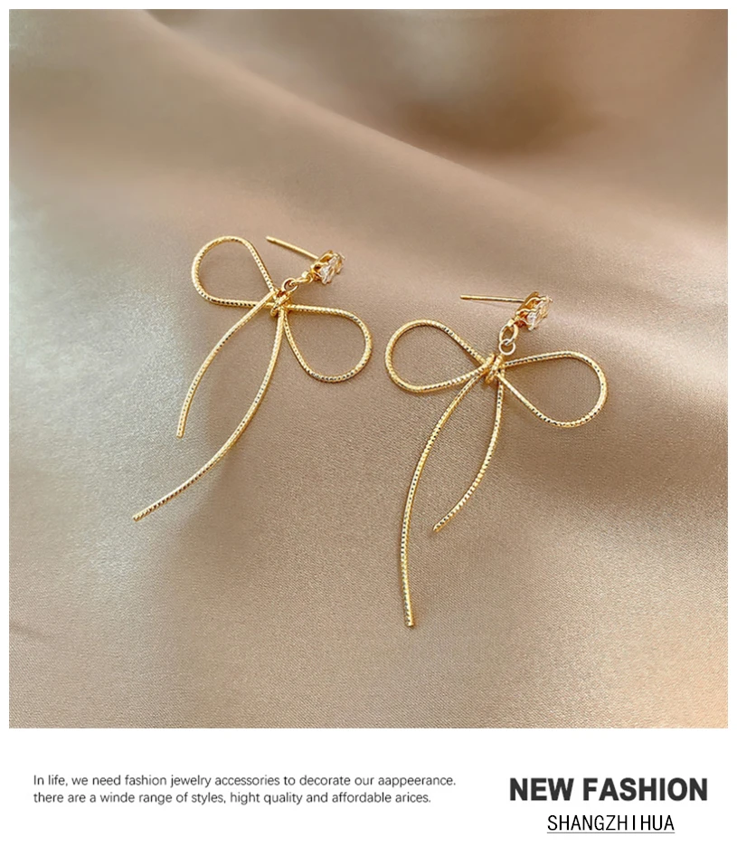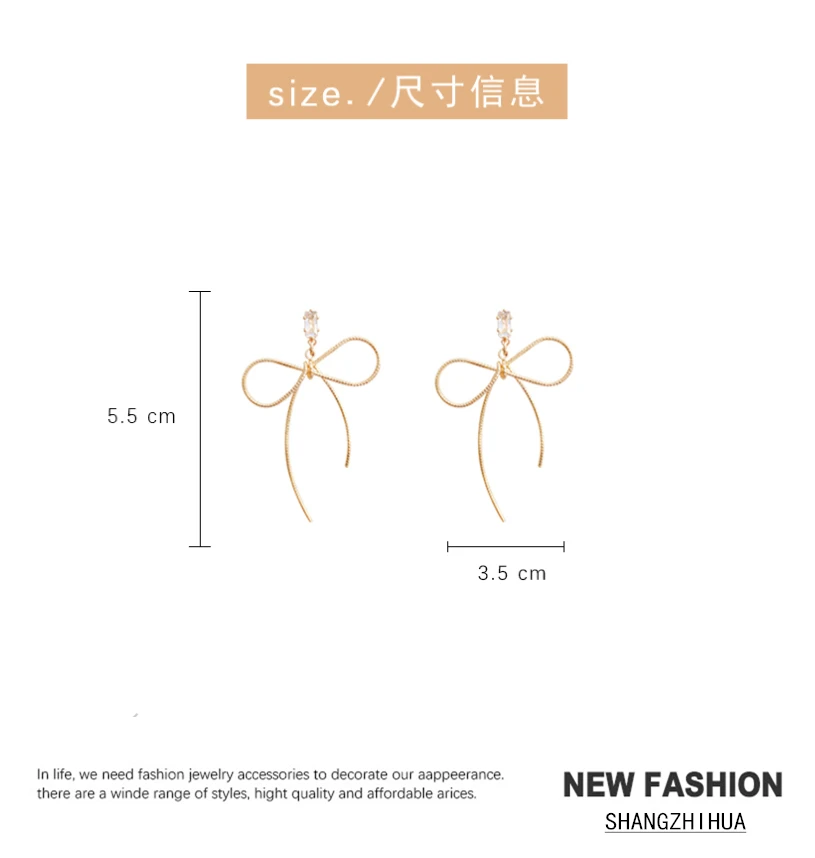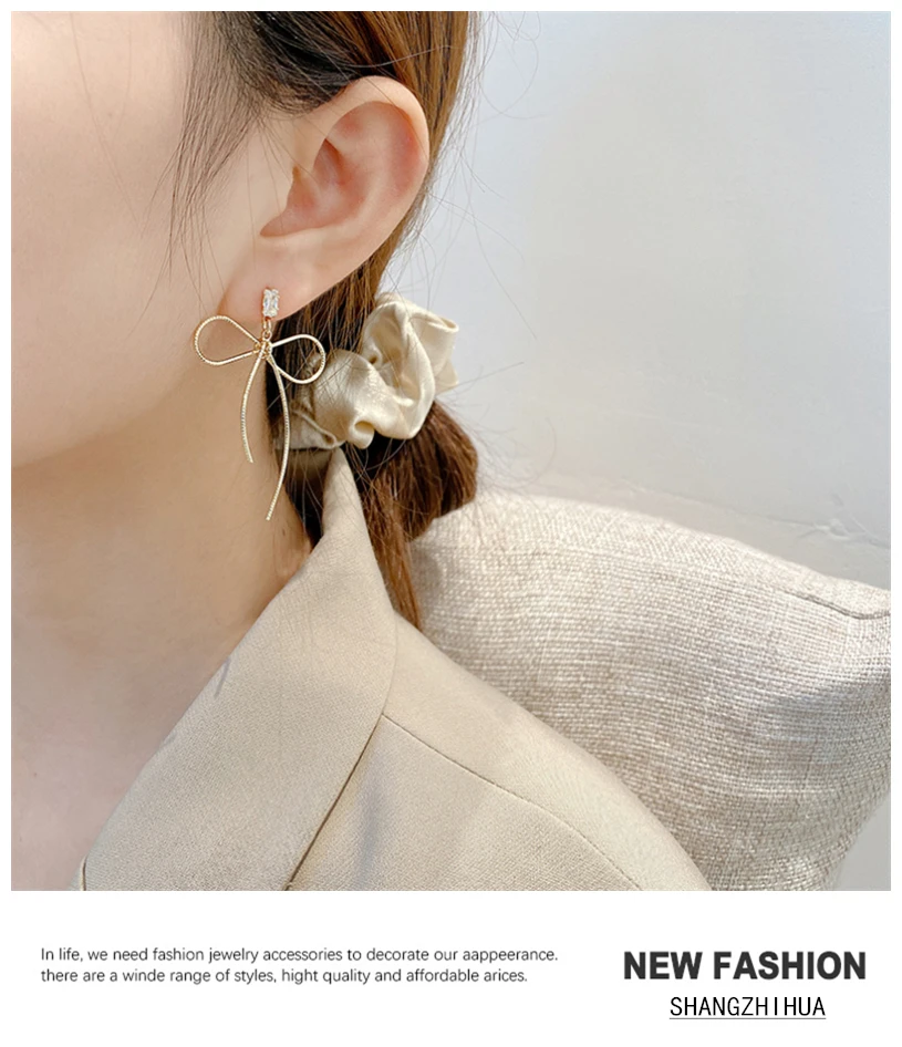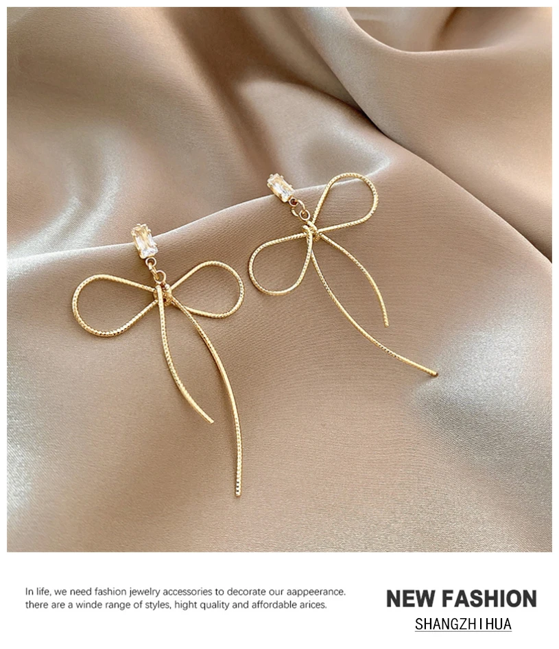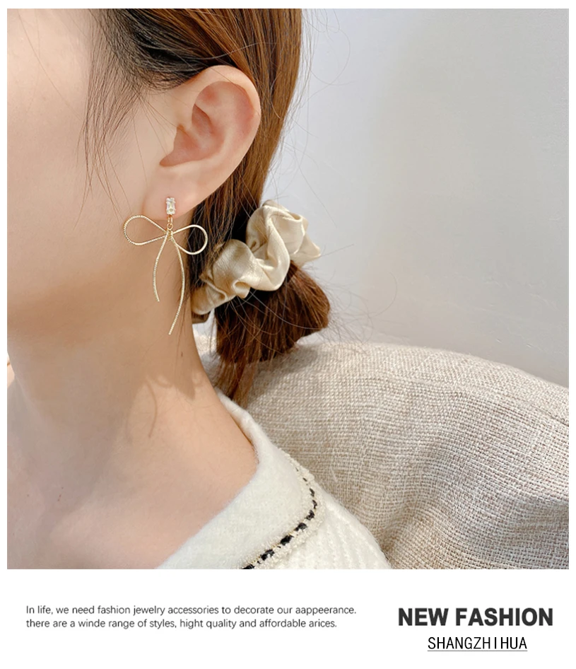 Серьги женские SHANGZHIHUA, в Корейском стиле, с золотой подвеской-бантом, 2021
