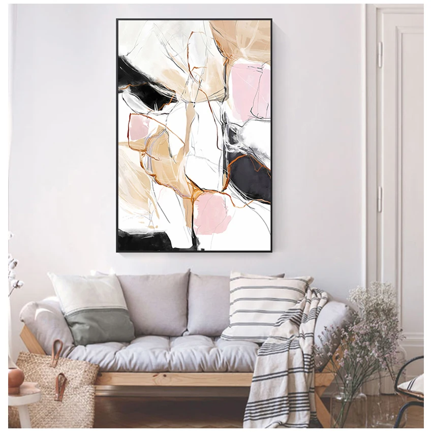 Картина для украшения комнаты в скандинавском стиле, современная абстрактная Красивая красочная розовая Картина на холсте, настенное искусство для гостиной