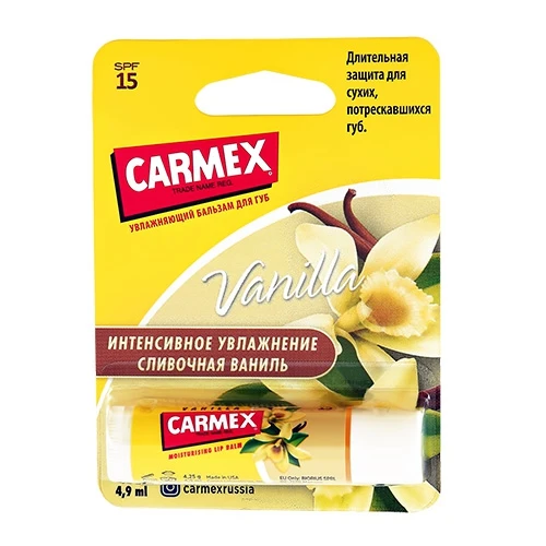 Бальзам для губ CARMEX ВАНИЛЬ в стике SPF-15 4,09 мл, Восковая, Ежедневный уход