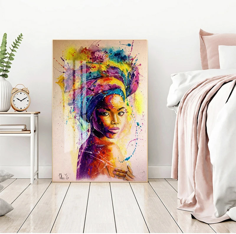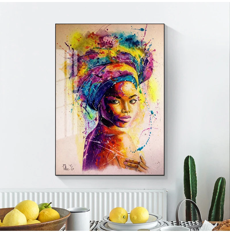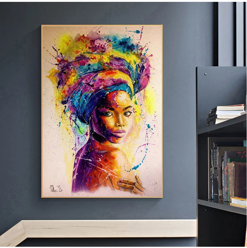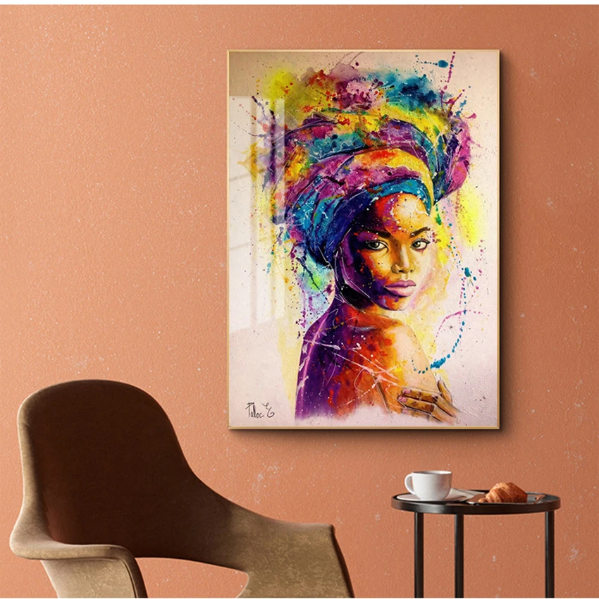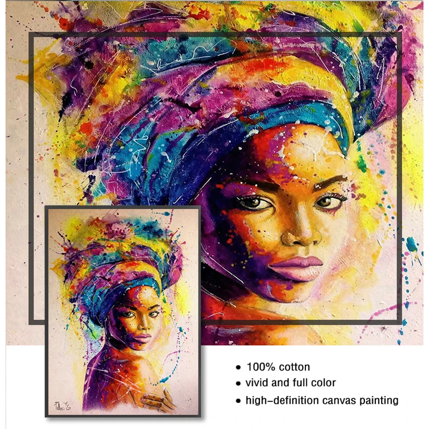 Картина на масляную стену для гостиной, Африки, женские печатные плакаты, абстрактная девушка, разноцветная картина