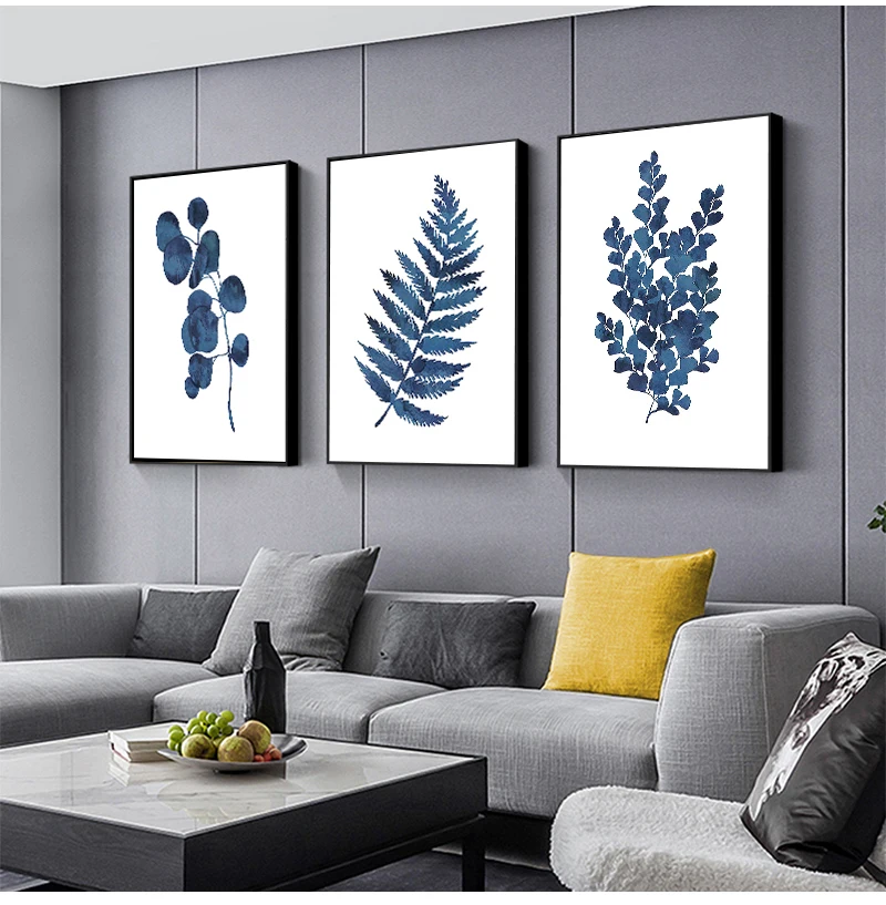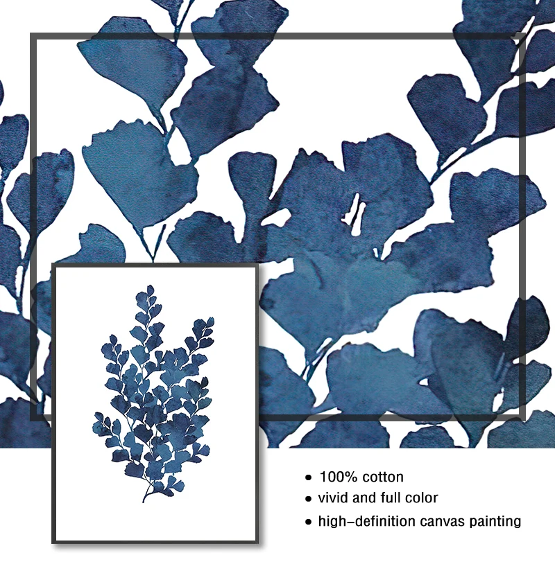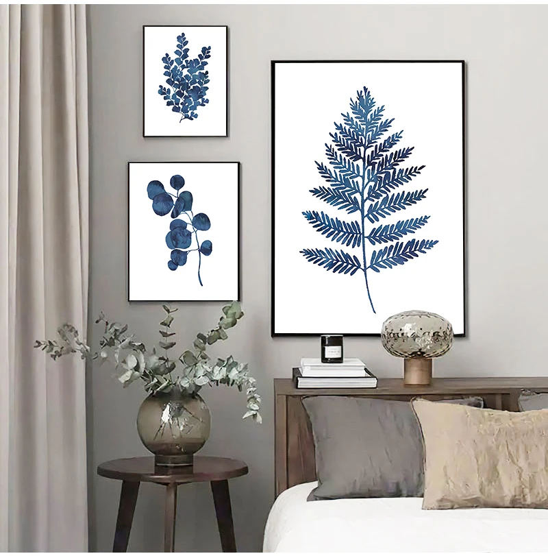 Синий эвкалипт листва Живопись Домашний декор стен чернила синий папоротник принты акварель лист Индиго Ботаническое Искусство Холст s, чернила