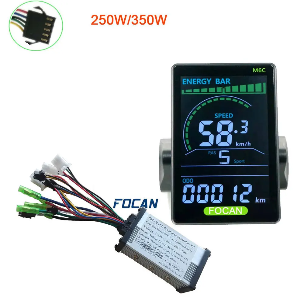 Бесщеточный контроллер для электрического велосипеда, большой цветной экран, ЖК-дисплей TFT M6C, 24 В, 36 В, 48 В, 250 Вт, 350 Вт