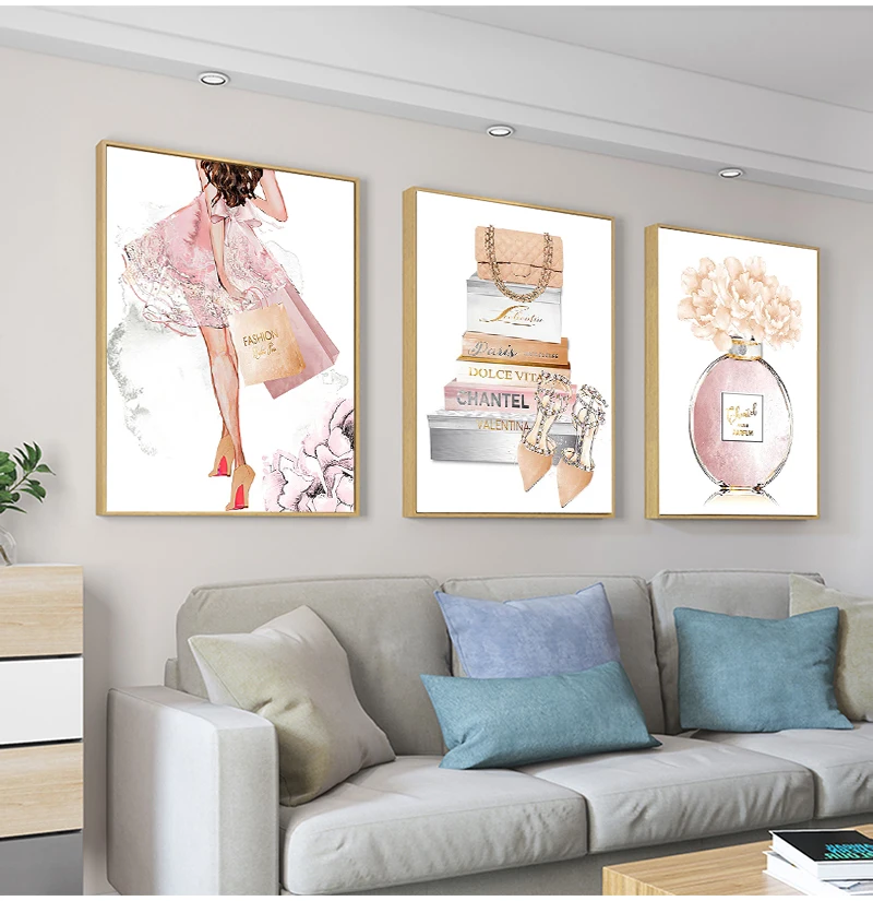 Картина на холсте с принтом розовых парфюмерии, настенное художественное украшение, Скандинавская живопись для дома