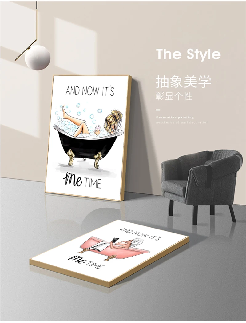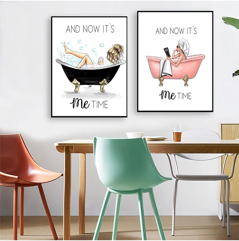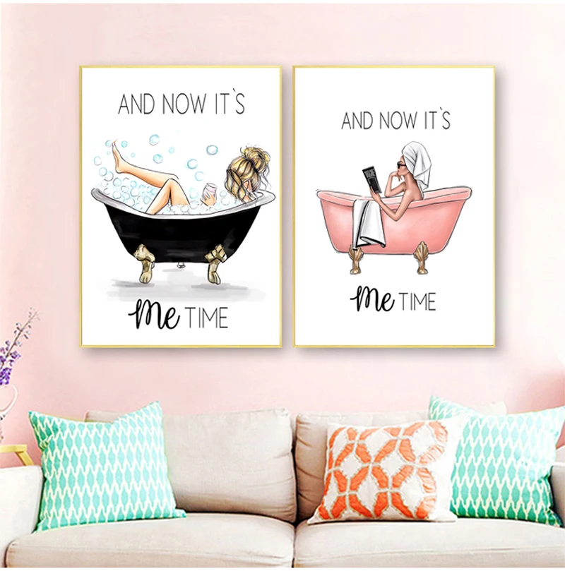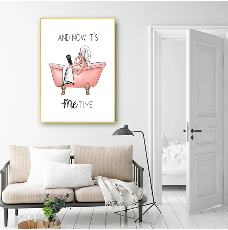 Картина на холсте в ванну, модульная рамка, картина, украшение для дома, Постер в скандинавском стиле для ванной, настенное искусство, HD печать, девушка на