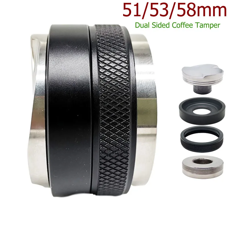 Дистрибьютор и Темпер для кофе, 515358 мм, с двойной головкой, подходит для выравнивания кофе, регулируемая глубина-Профессиональные ручные тамперы для эспрессо