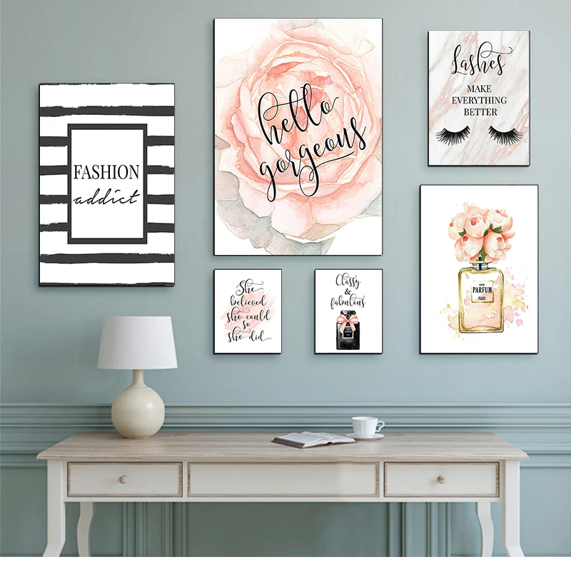 Настенная картина, современный декор для спальни и девушек, модная розовая Настенная картина, принты духов, Картина на холсте, подарок для ее ресниц
