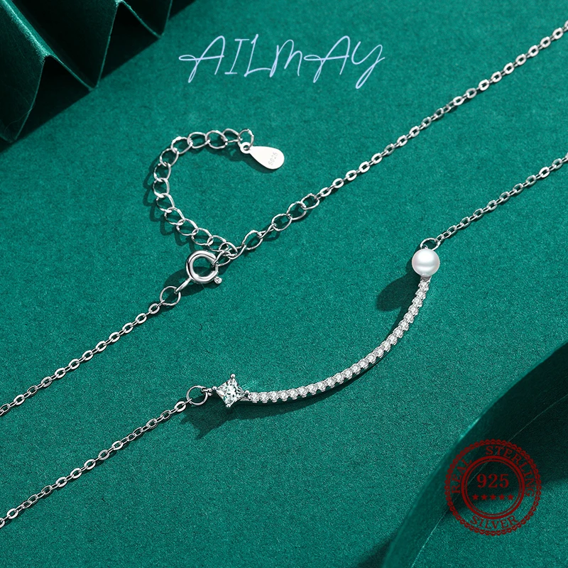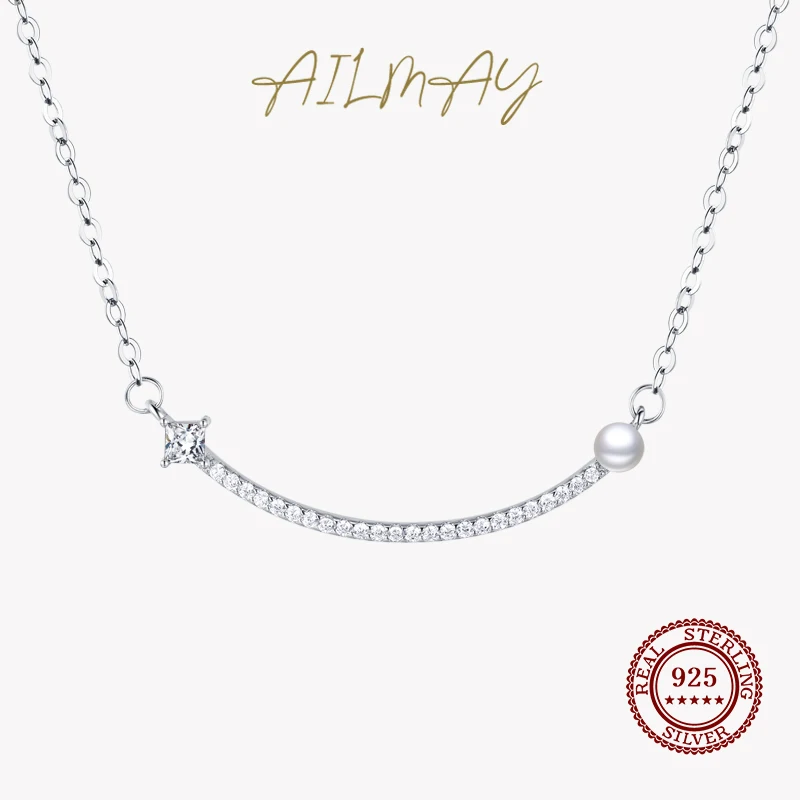 Ailmay новая распродажа 925 стерлингового серебра улыбка Lucky жемчужное ожерелье с подвеской Простое Элегантное платье для женщин и девочек вечерние аксессуары для ювелирных изделий