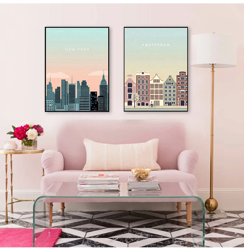 Настенные картины с принтом для гостиной, декор Парижа, Лондона, Берлина, путешествия, винтажные настенные картины на холсте в скандинавском стиле
