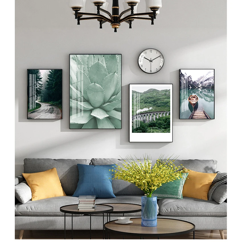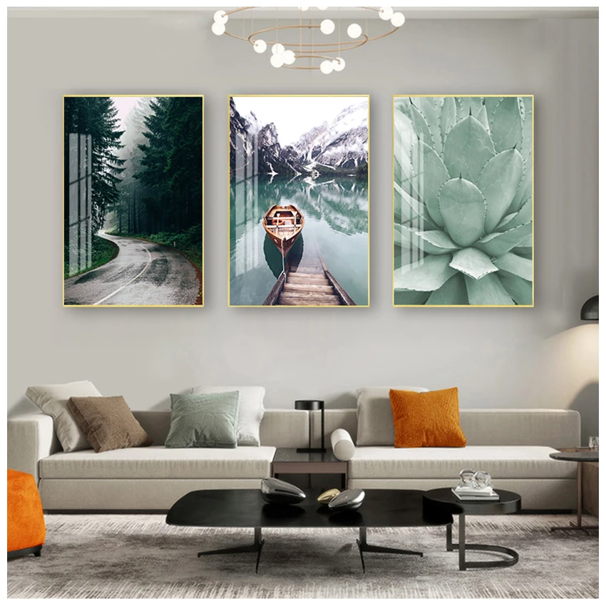 Декоративная картина с рисунком, постер на холсте в скандинавском стиле, с изображением лодки, озера, гостиной