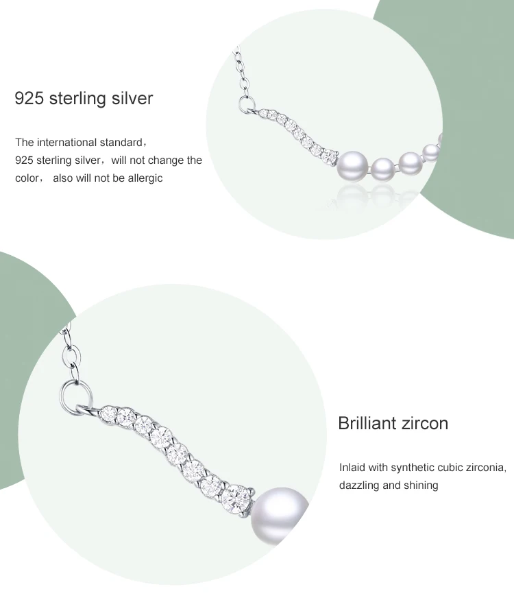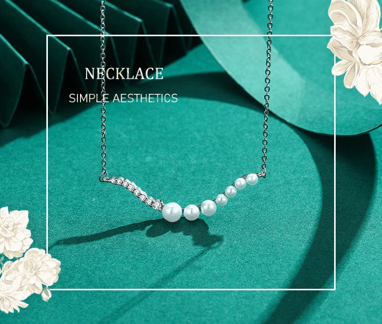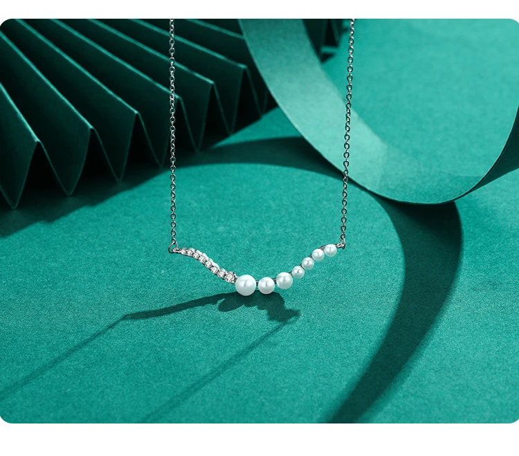 Ожерелье женское из серебра 925 пробы с жемчугом в форме волны