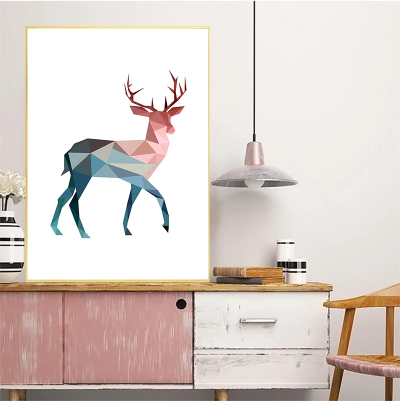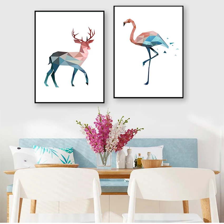 Картины с изображением оленя пива журавля для гостиной домашний декор скандинавский розовый и синий геометрические постеры с животными настенные картины на холсте