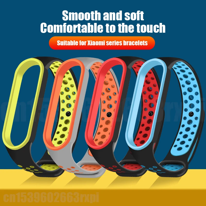 Ремешок для часов Xiaomi Mi Band 3 4 5 6, двухцветный сменный пористый дышащий спортивный смарт-браслет с защитой от пота, Band5 Band6