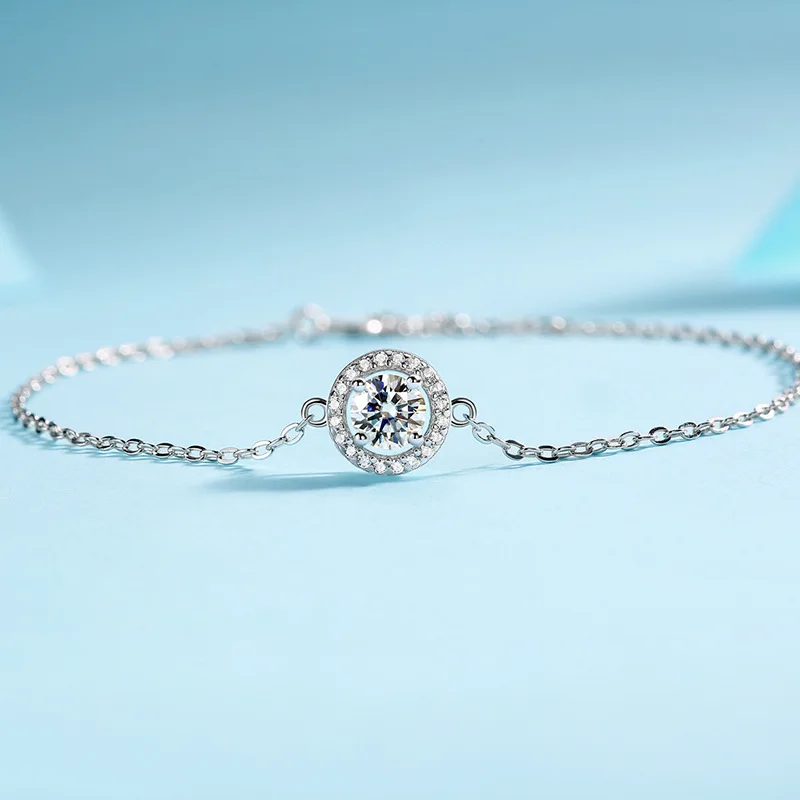 Браслет с муассанитом Женский, круглый позолоченный браслет из сере...