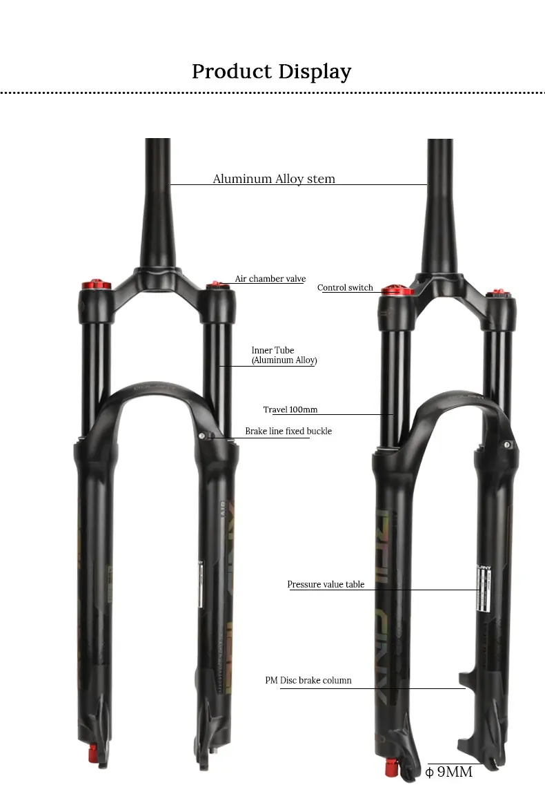 Название: вилка пневматической подвескиРазмер: 26 дюймов, 27,5 дюймов, 29 дюймовLookout:Lookout(LO)/Дистанционный Замок (RL)Путешествия: 100 мм (120 мм-это открытое путешествие, 100 мм-это фактическое эффективное путешествие)Ось: 9 ммКорона: кованый сплавТормоз: дисковый тормозСтолб: алюминий 32 ммВес.26 В комплекте: 1670 г ~ 1720 г +/-50 г (только для справки)27,5 дюймов: 1690g ~ 1810g +/-50 г (только для справки)29 дюймов: 1740 г ~ 1820 +/-50 г (только для справки)Применимо: Дорожные велосипеды MTBВарианты: прямая/коническая трубка, управление линией/ручное управлениеЦветной светоотражающий маркер