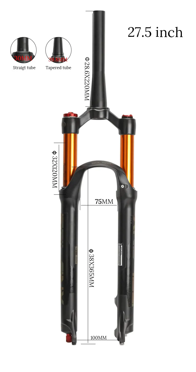 Пневматическая вилка для горного велосипеда, поддержка регулировки отскока, 2627, 529 замок, прямые конусные Запчасти для горного велосипеда, вилка
