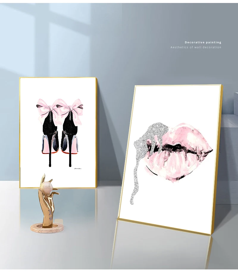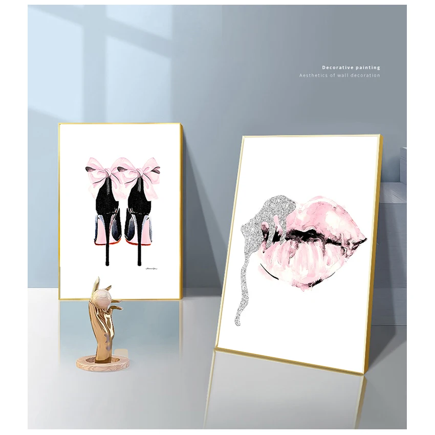 Женские картины для гостиной, Современное украшение, модное настенное искусство, постер с духами и губами, Картина на холсте на высоких каблуках