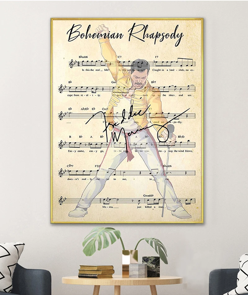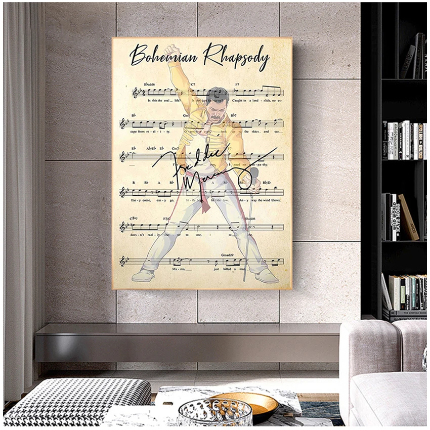И печать на стене для комнаты, домашний декор, богемное оформление Rhapsody Chord, текст, Freddie Mercury портрет, холст, живопись s