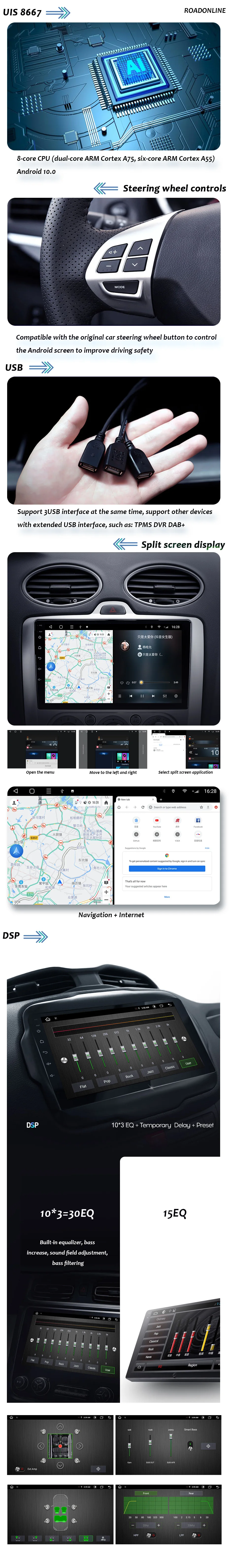 Roadonline умный 4G Android 10 6G 128G автомобильный радиоприемник,...